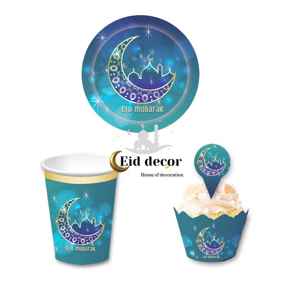 - Celebrate in style with our blue ‘Eid Mubarak paper plates