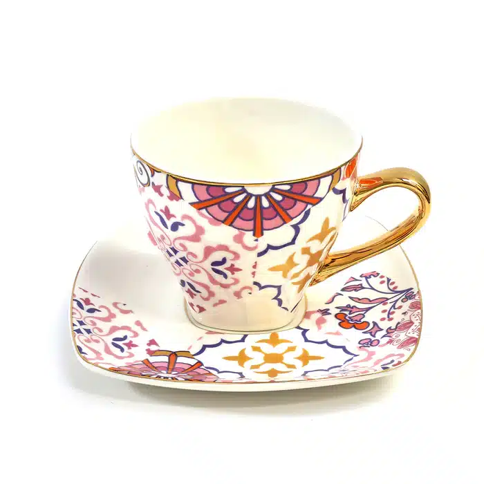 • A ceramic coffee mug & dish gift set printed with Islamic designs