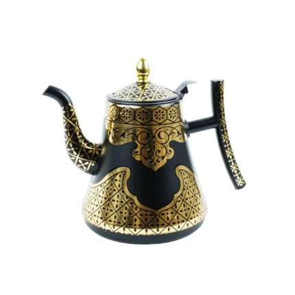 BLACK Metal Teapot Gold With Geometric/Arabesque