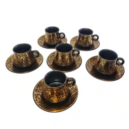 Set of 6 Ceramic Cups & Saucers – Black & Gold Arabic Pattern