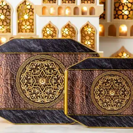 Octagonal Flat Trays with Gold Handles – 2pc Set