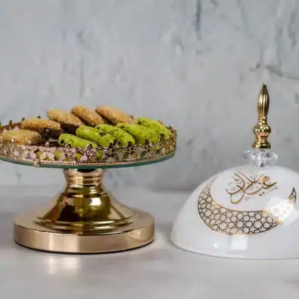 White Eid Mubarak Ornate Domed Lid Serving Dish