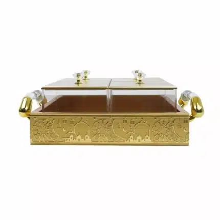 Gold Serving Tray with 4-Compartments with Lids