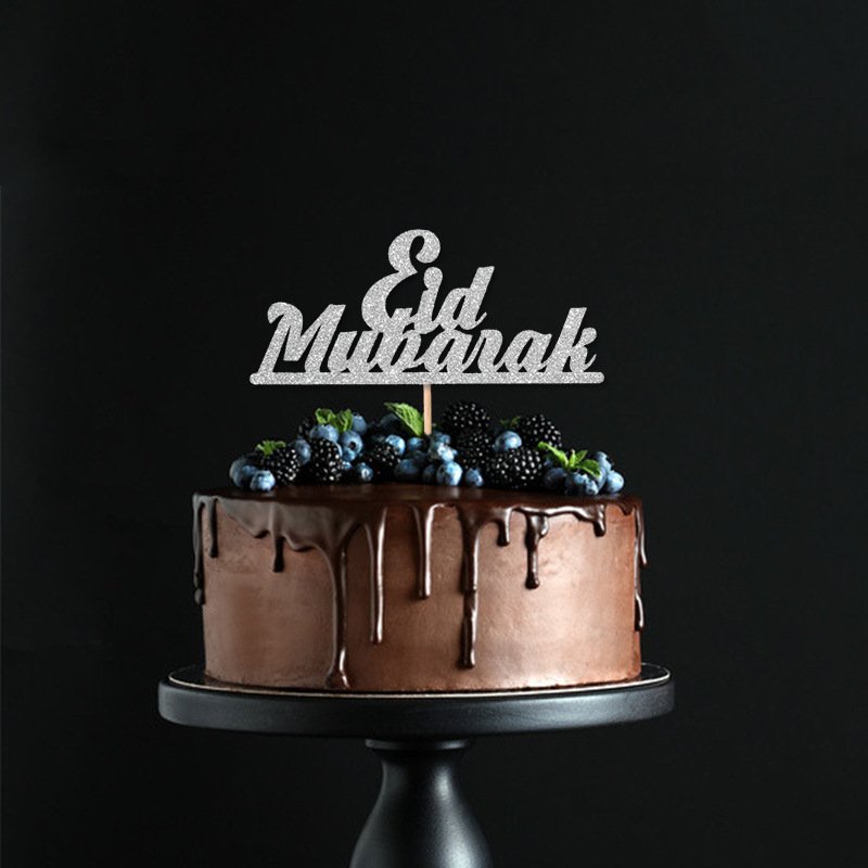 Home Cake Topper Gold or silver Glitter Eid Mubarak Cake Topper