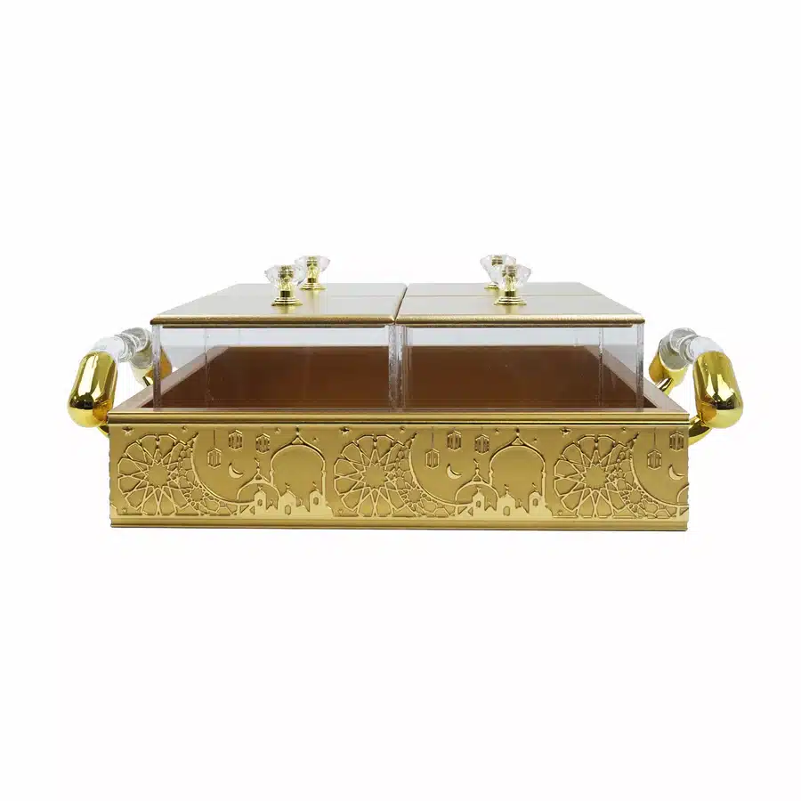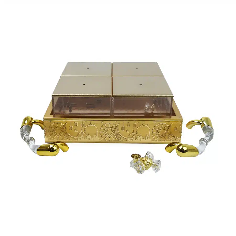 Home Serving tray and tea set Gold Serving Tray with 4-Compartments with Lids