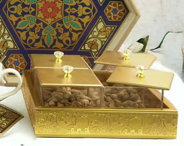 Be the first to review “Gold Serving Tray with 4-Compartments with Lids” Cancel reply