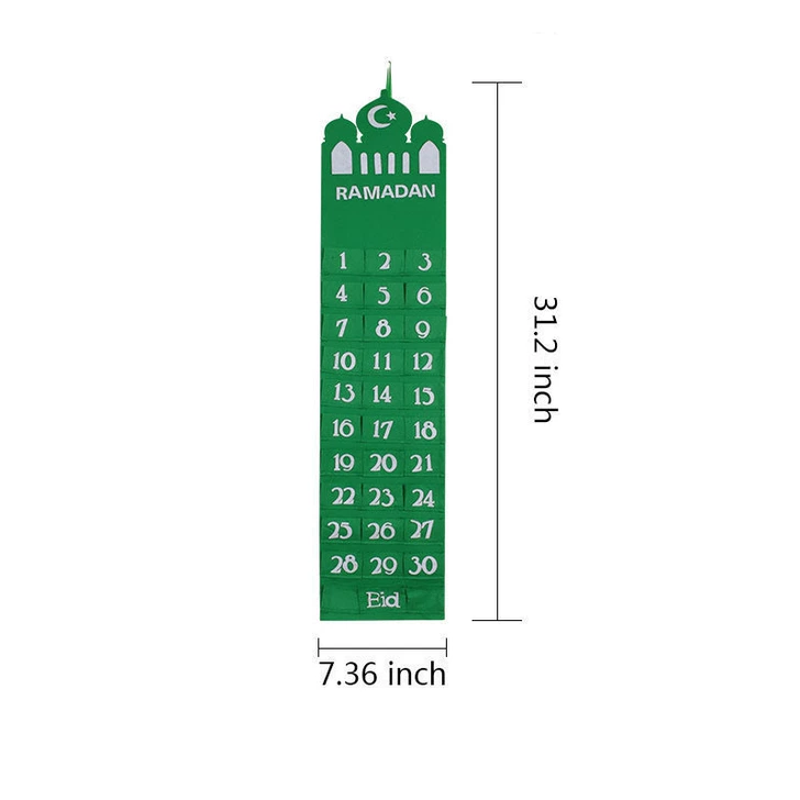 Home Ramadan Calender Green Mosque Felt Ramadan Advent Calendar with Pockets.