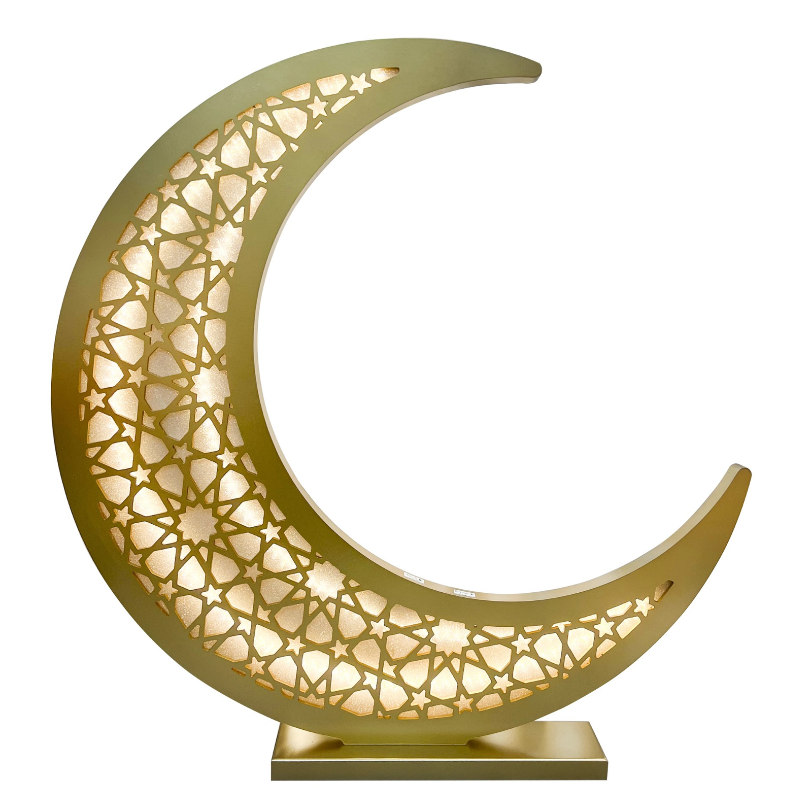 A stunning LED crescent moon décor piece designed to be a centerpiece for Ramadan and Eid celebrations. Emits a soft glow and adds a magical atmosphere to any space.