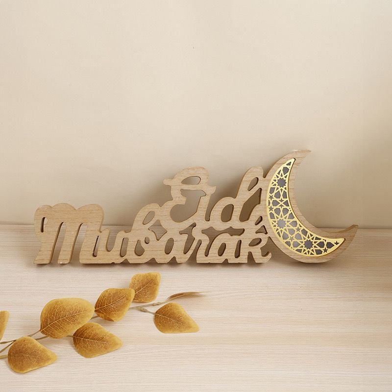 Natural Wooden “Eid Mubarak” & Moon Decoration / Table Centerpiece