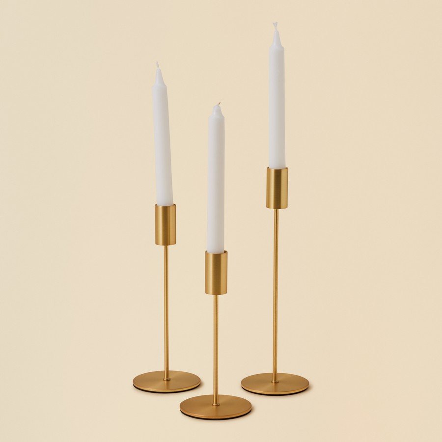 Elevate you home decor or create a romantic atmosphere with the Openook Assorted Candlesticks in a gold finishing. This set of candlesticks come in 3 assorted heights (17cm, 21cm, 25cm) and are a luxurious addition to any living or bedroom space.