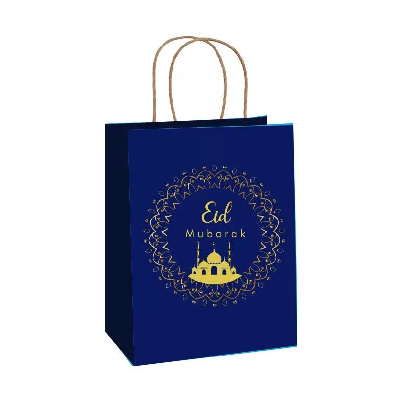 - Pack of 2 medium-sized matching gold & blue color gift bags