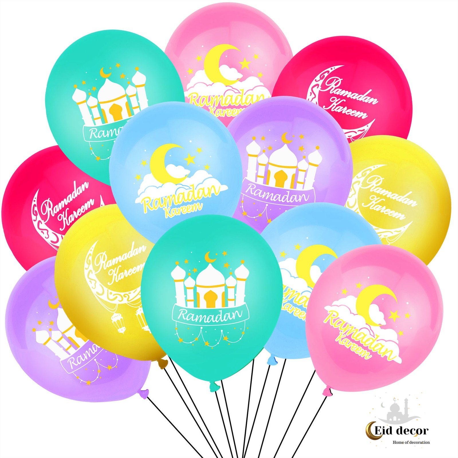 High-quality printed Pastel Multicolour latex balloons – Ideal for Ramadan parties & events.