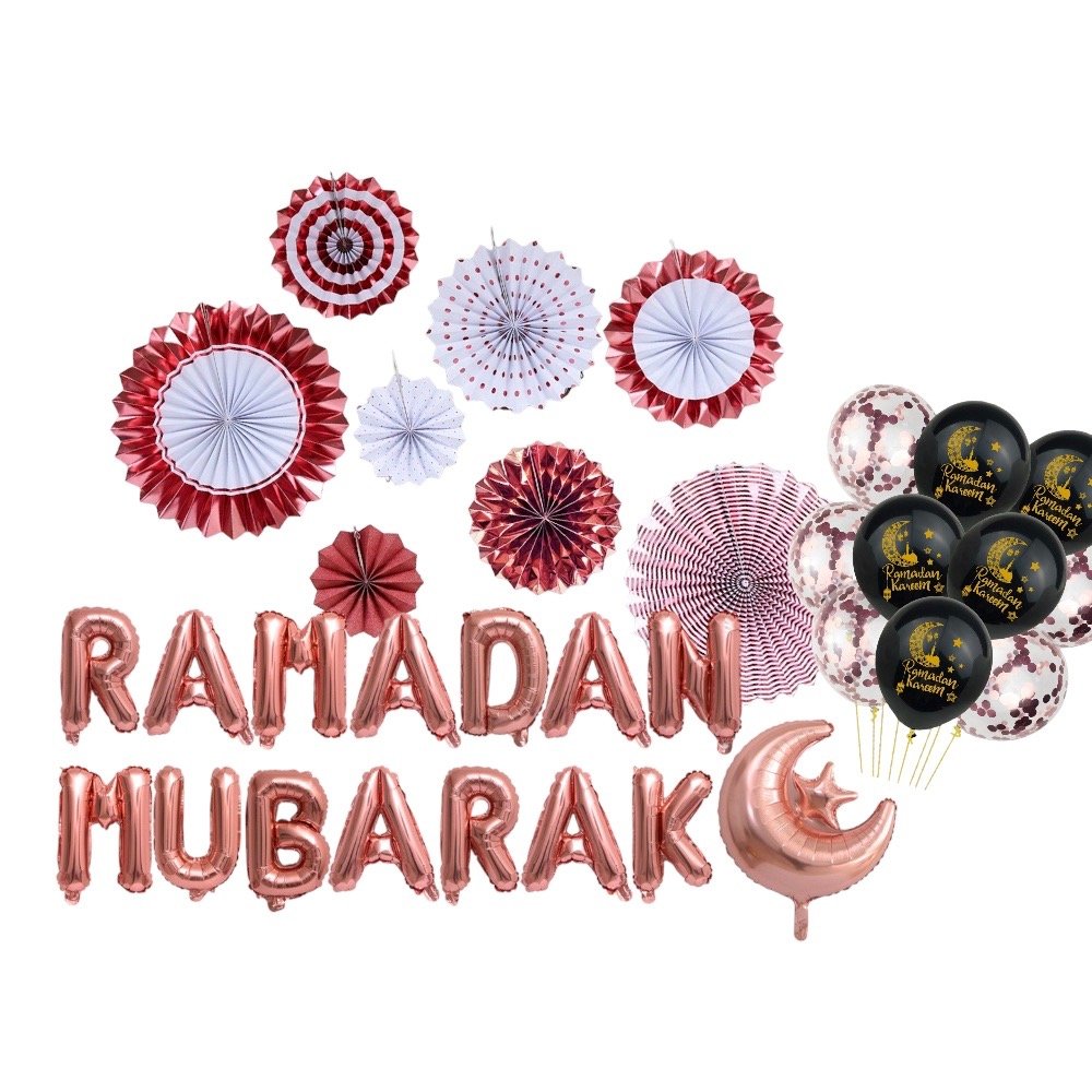 Home Ramadan set Rose Gold Paper Fans & foil ballon Matching Balloons Set R105