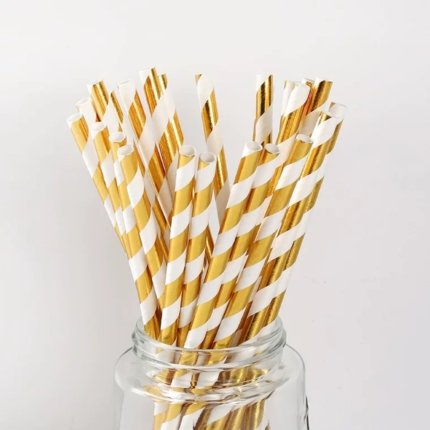gold Metallic Paper Party Straws