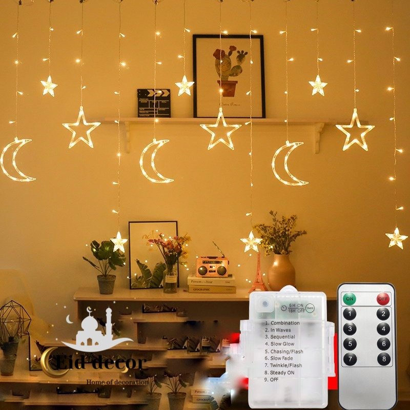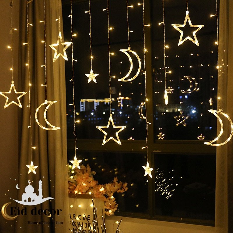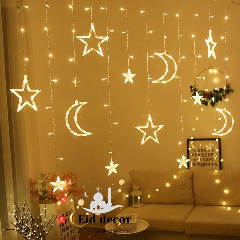 Home Lanterns and Lights Star Moon light Curtain Lamp Eid Mubarak Decor