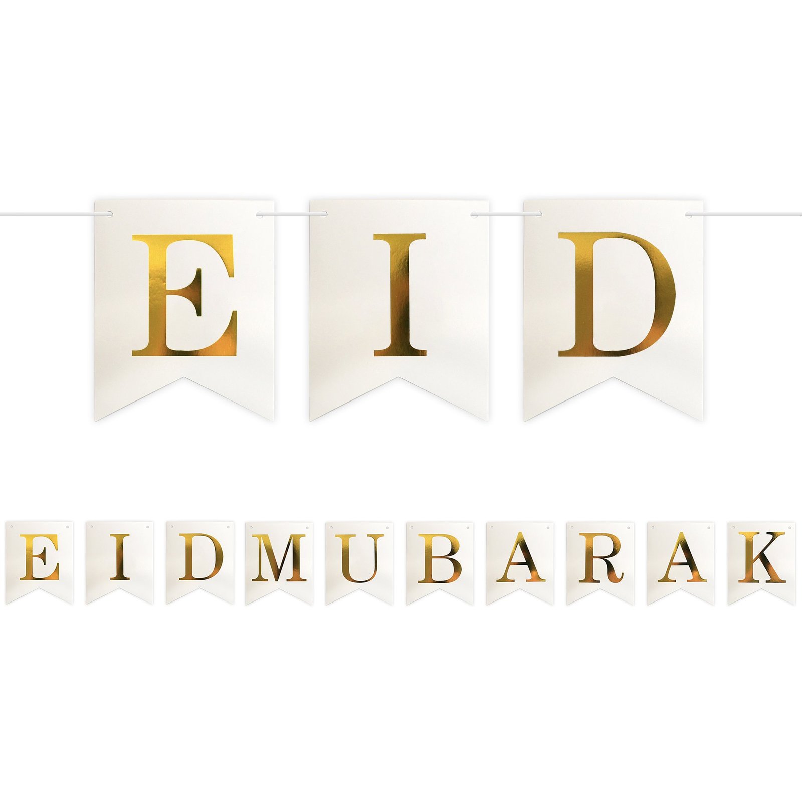 - Pennant flags spelling out ‘EID MUBARAK’