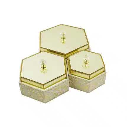 Set of 3 CREAM Hexagon Acrylic Boxes with Lids