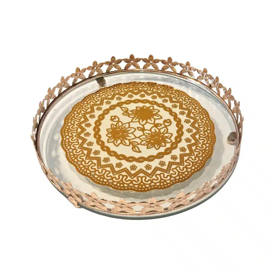 Home Serving tray and tea set White Eid Mubarak Ornate Domed Lid Serving Dish